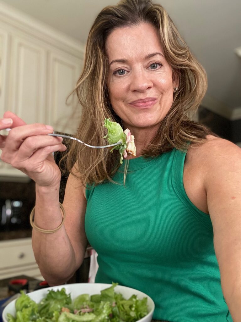 *Preparation is key! I keep staples in my frig like the pickled onions, grated parmesan, homemade dressing and leftover protein so I am able to refuel right after a workout.